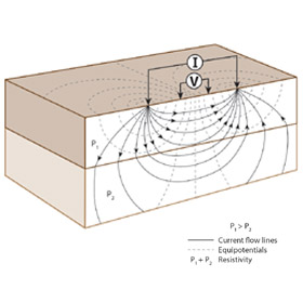 اولین قدم در طراحی سیستم زمین اعم از سیستم زمین تابلو های برق ، آسانسور ، پله برقی و یا سیستم زمین صاعقه گیرها ، اندازه گیری مقاومت ویژه خاک محل مورد نظر است . با در دست داشتن این مقدار توانایی طراحی و پیش بینی عملکرد سیستم طراحی شده را در دسترس داشت . برای اینکار از دستگاههای اندازه گیری چهار سیمه استفاده می شود . این دستگاه جریانی را از طریق دو پروب که در دوطرف مسیر اندازه گیری خاک قرار میگیرند به زمین تزریق کرده و توسط دو پروب دیگر در بین دو پروب قبلی ، افت ولتاژ را اندازه گیری می کند . با دانستن مقدار مقاومت و جریان می توان به مقدار مقاومت ویژه دسترسی پیدا کرد .